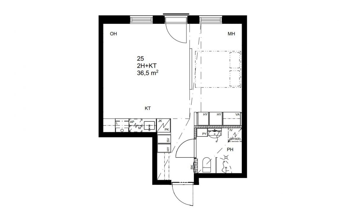 Huoneistoja 27 kpl, rakennus varustettu hissillä. Lämpimät häkkivarastot, suksien huoltotila yhteiskäytössä. Ulkoiluvälinevarasto piharakennuksessa, ajoväylät asfaltoitu.