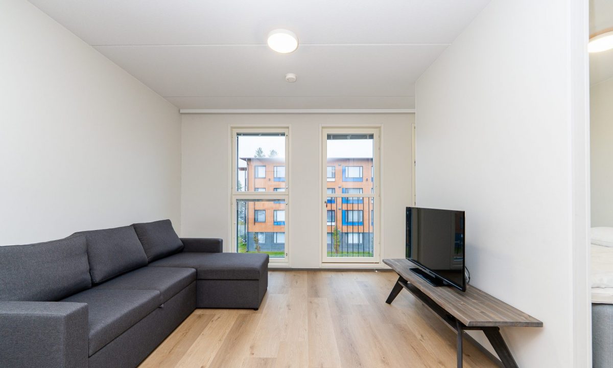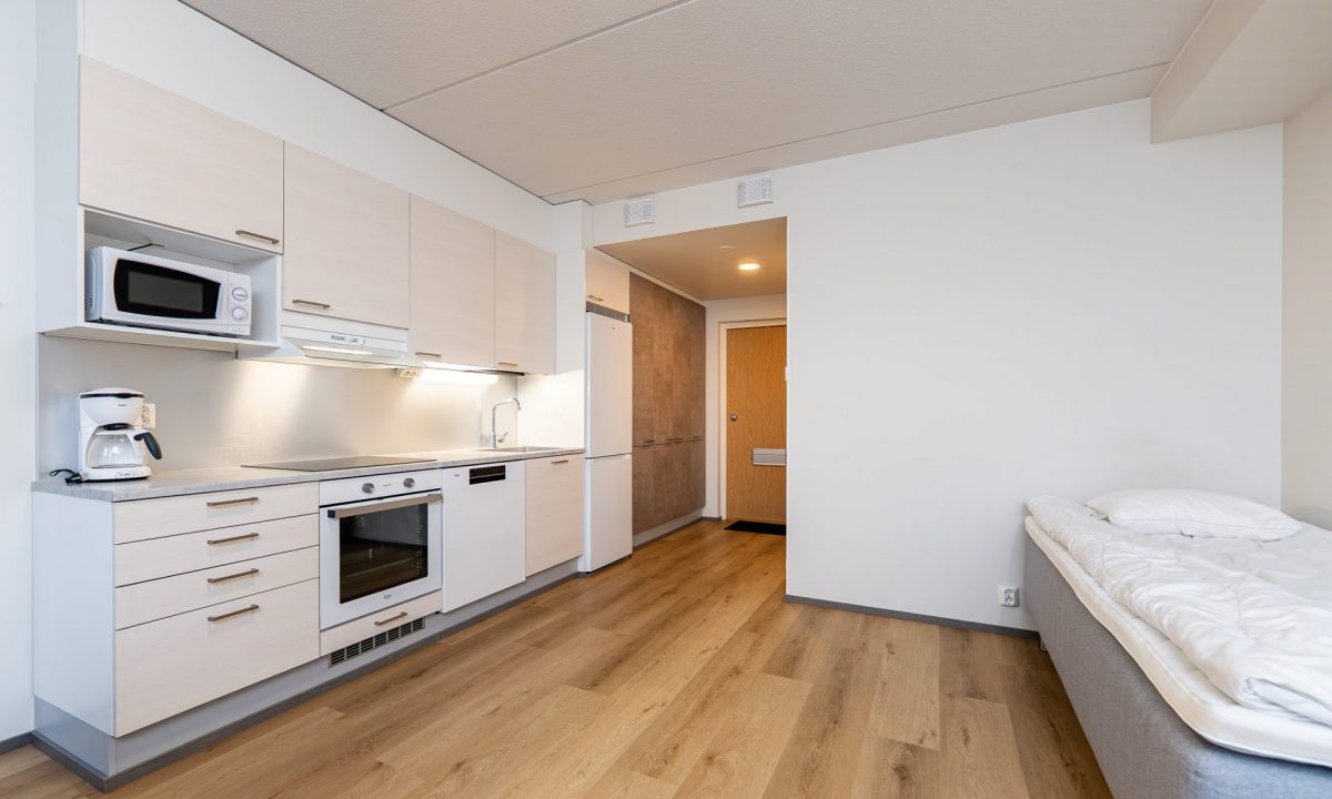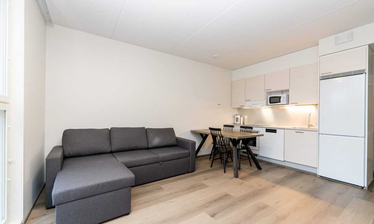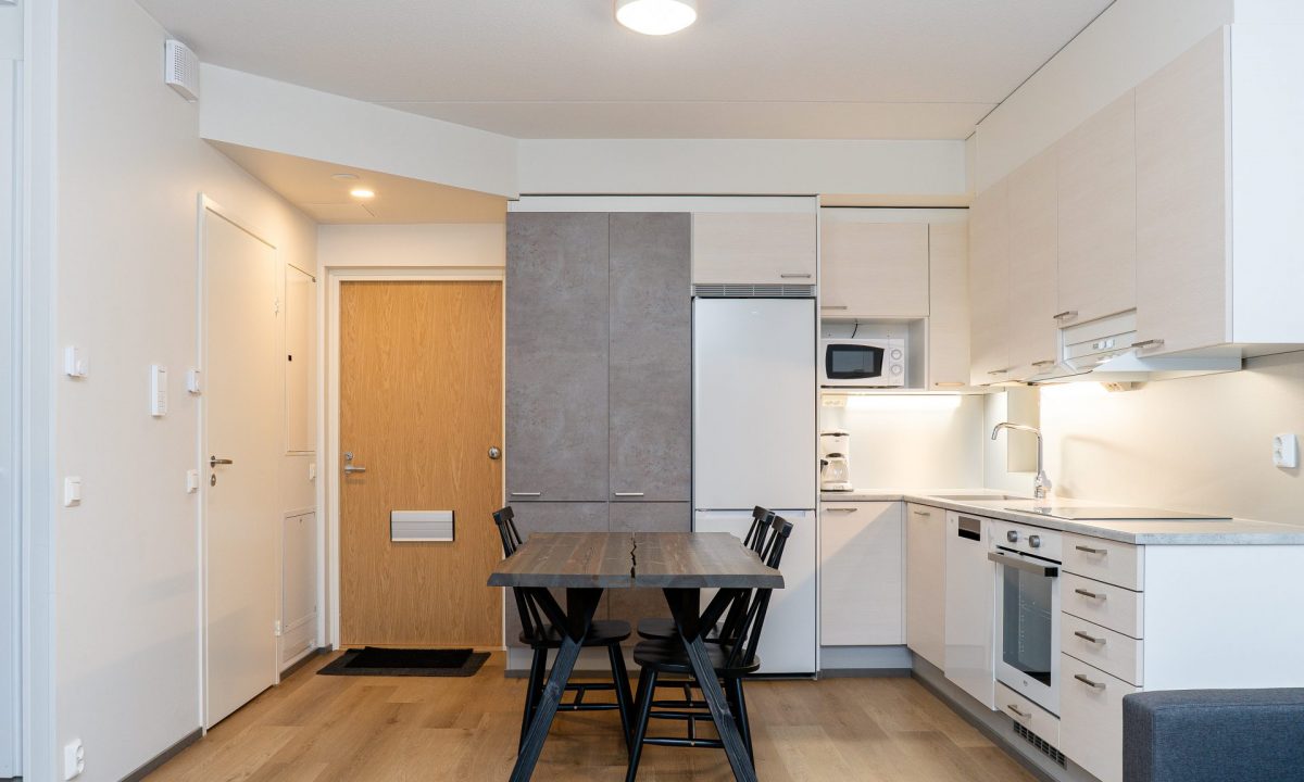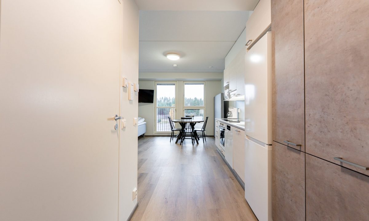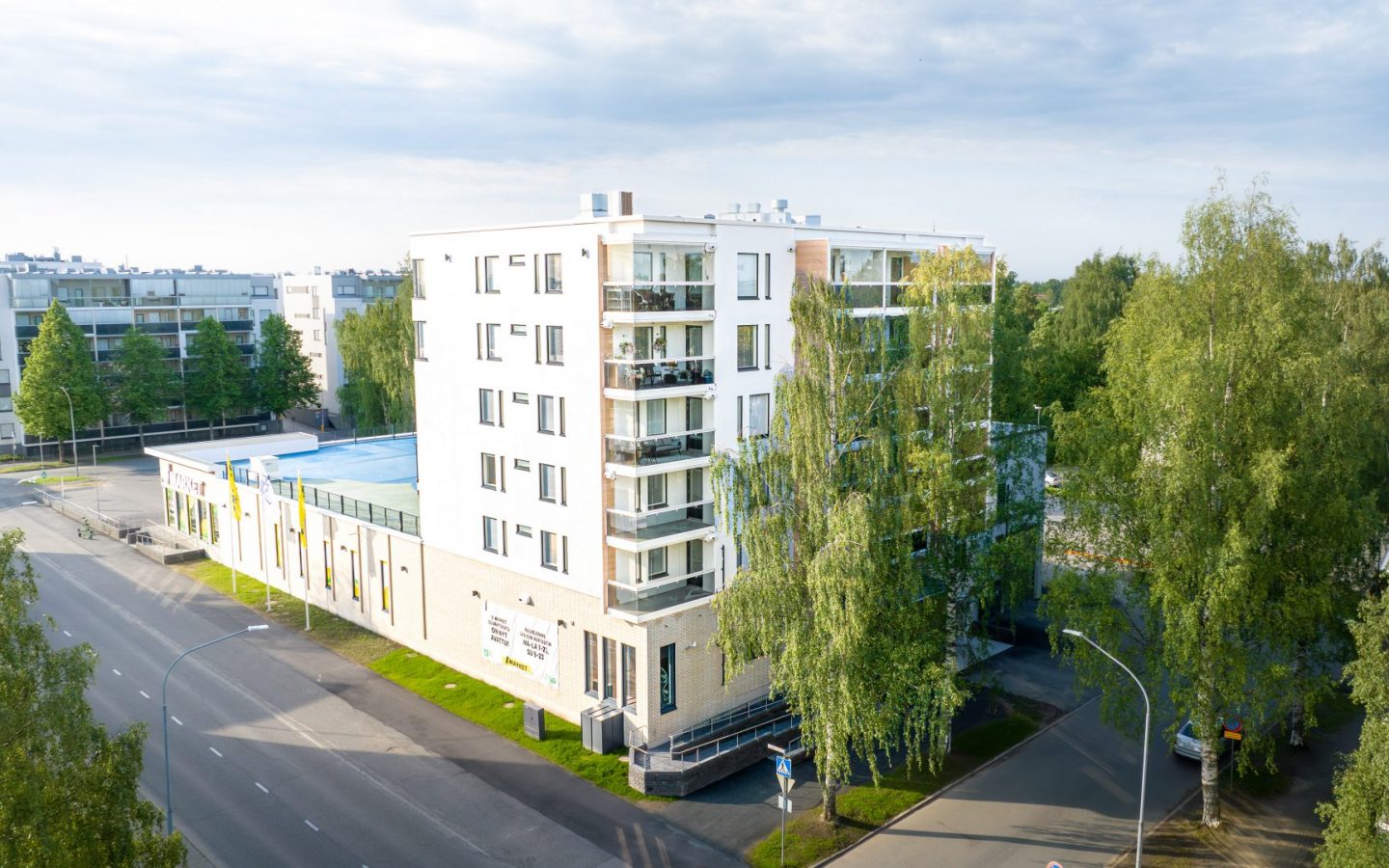Vuokatinhovintie 6 on valmistunut omalle tontille 2023. Talossa on 27 asuntoa joista tämä kulmahuoneisto sijaitsee ylimmässä kerroksessa.